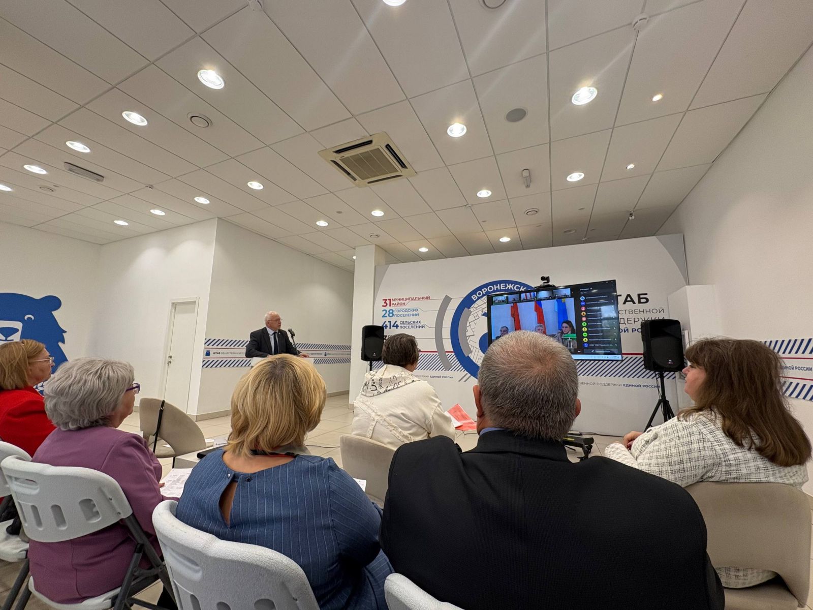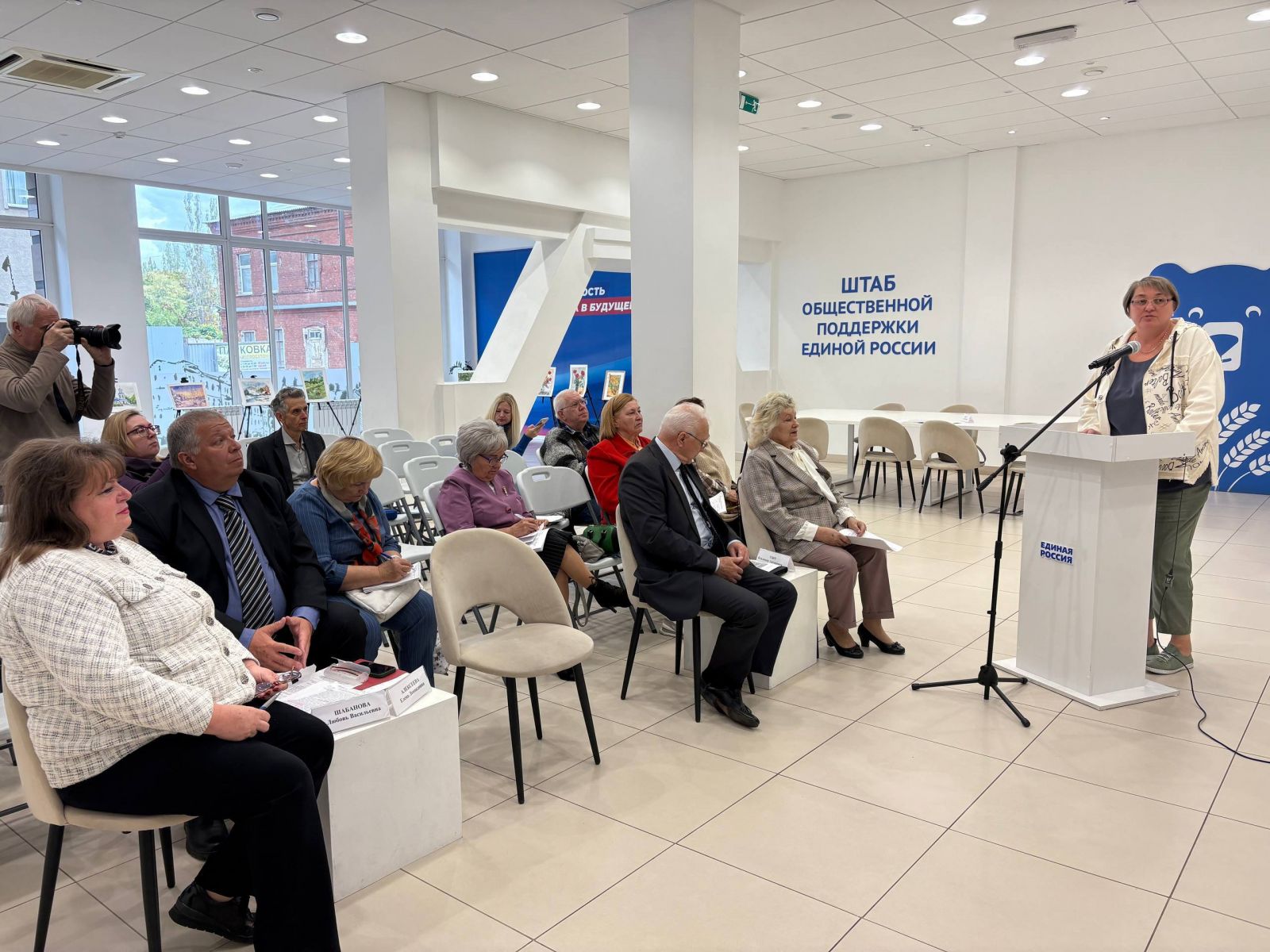 На отчетном собрании Совета ветеранов, состоявшемся в Штабе общественной поддержки, собрались представители районных ветеранских организаций, директора и сотрудники управлений социальной защиты, а также начальник отдела организации социального обслуживания и внедрения системы долговременного ухода Алексеева Елена Леонидовна.